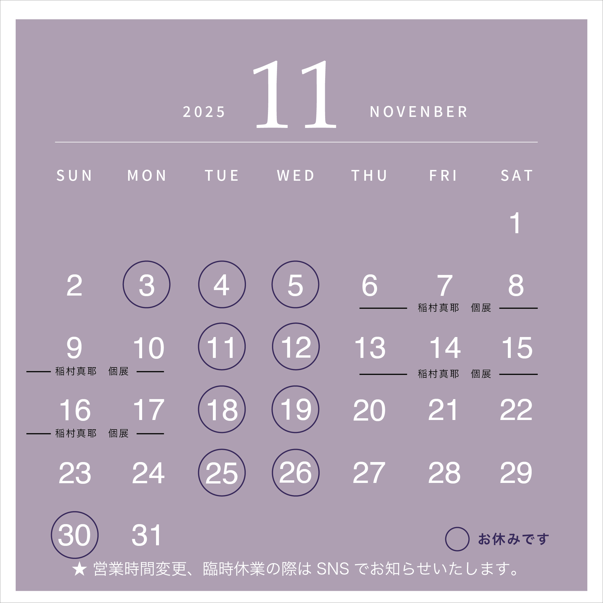 11/6より稲村真耶さんの個展を開催いたします。当店では2年ぶりとなります…